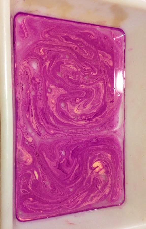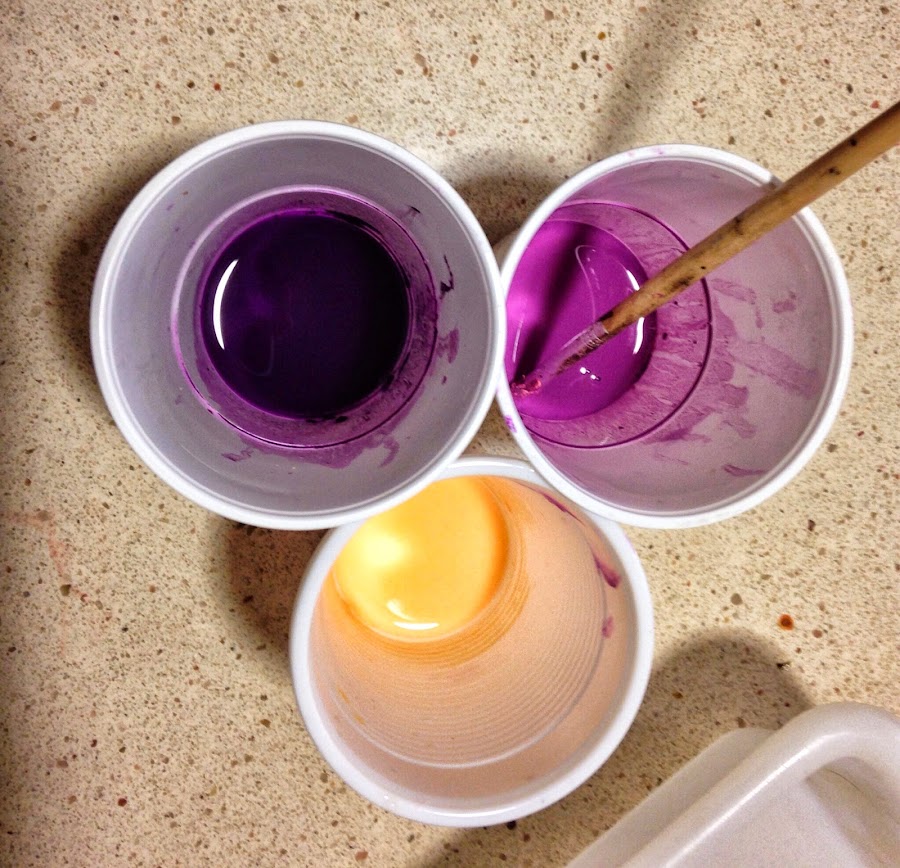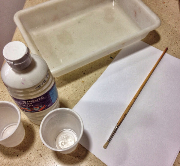 Una vez mezclados con un pincel, he utilizado la pipeta para tirar gotas de pintura sobre el agua, pero se puede utilizar el pincel, un cepillo de dientes viejo...IMAGINACIÓN!