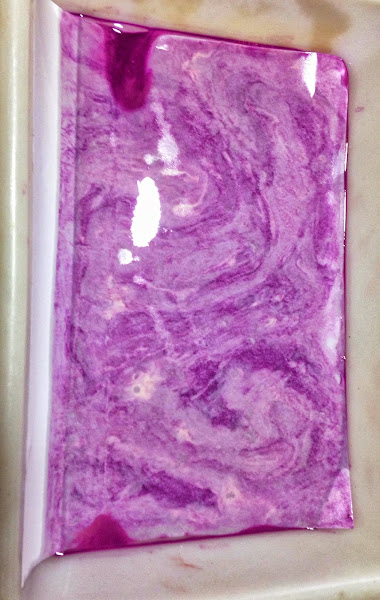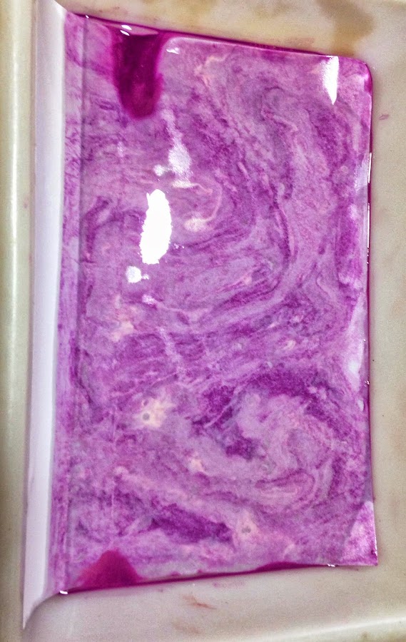 Una vez logrado el diseño deseado sumergimos el folio... de inmediato lo sacamos para ponerlo en una superficie protegida a secar.