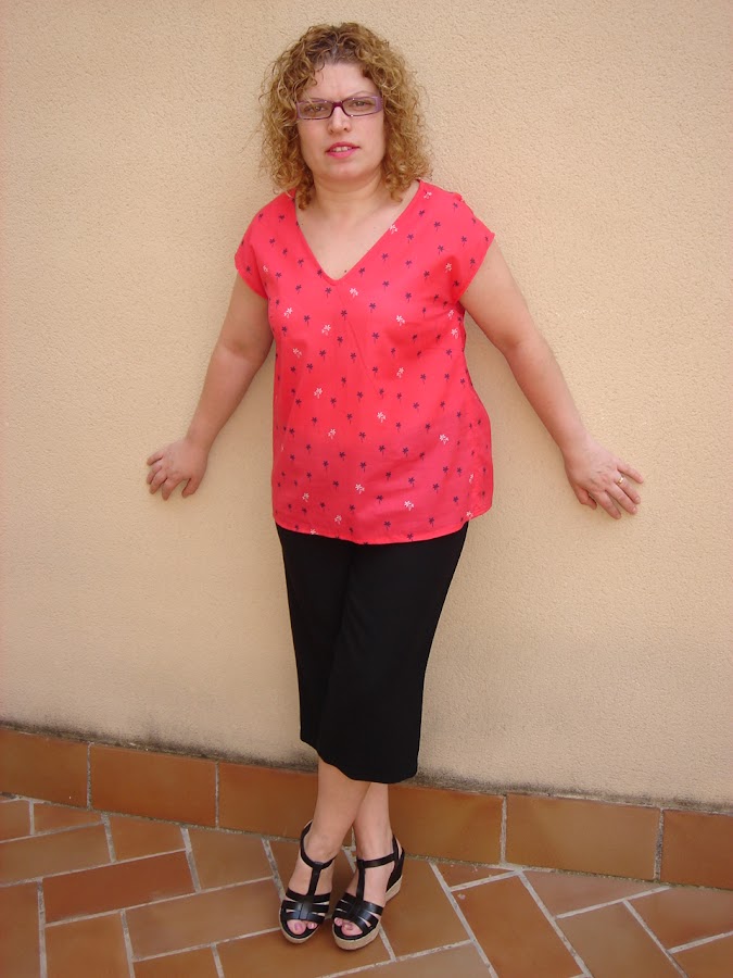 El tejido es de algodon finito , nada mas fresco que el algodon para el verano y el patron sencillo , corte recto y escote de pico , para que no agobie con el calor.