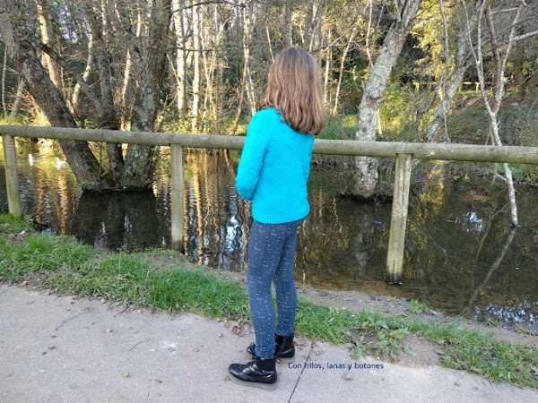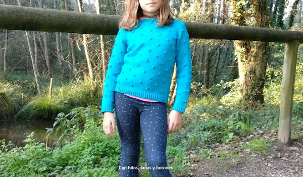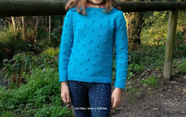 Durante meses, cuando aun no se me había pasado por la cabeza hacer este jersey, no hacía más que ver patrones con bodoques por todas partes. Jerséis con bodoques, chaquetas con bodoques, peleles con bodoques, todo eran bodoques a mi alrededor. Esto es una señal, pensé, tengo que hacerle un jersey con bodoques este año. Y por estas casualidades que tiene la vida a veces, esta idea me rondaba la cabeza buscando materializarse cuando un día me topé de casualidad en Instagram con una preciosidad de jersey con bodoques que podéis ver y . Me quedé prendada del jersey, ése, justo ése, era el modelo que le quería hacer a mi niña. Fue amor a primera vista. Así que se lo enseñé y cuál fue mi sorpresa cuando me dijo emocionada me encanta, mami, quiero uno así.