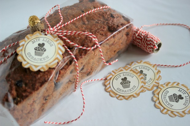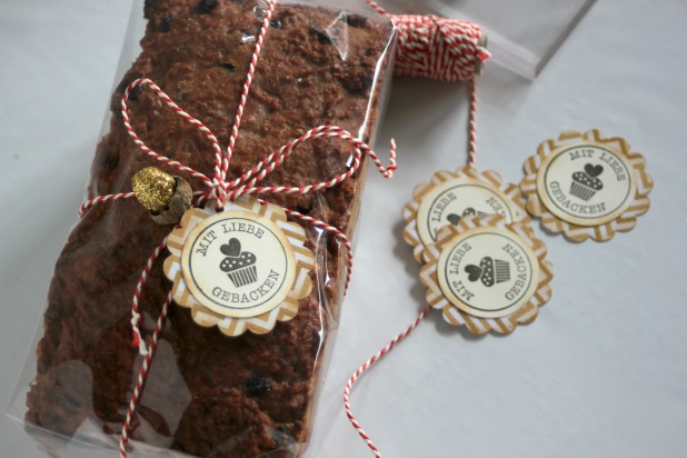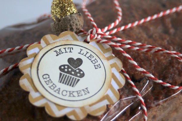 Para mi pan de este año: papel celofán (para lucirme con el producto!) una etiqueta: "Horneado con amor" (sello de Stampinup) y una bellota dorada (un poco de brillo no hace daño), porque aunque te estoy contando ésto ahora, mi pan salió a comienzos de noviembre (muy otoñal) del horno.