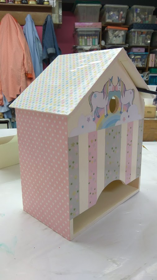 - Añadir diferentes papeles de decoración en las partes deseadas (tejado, laterales, frontal)