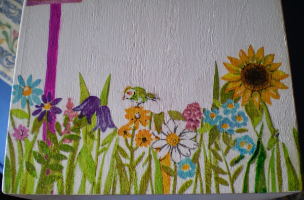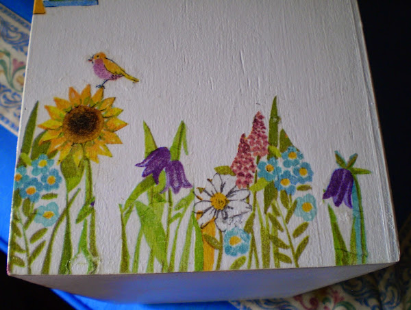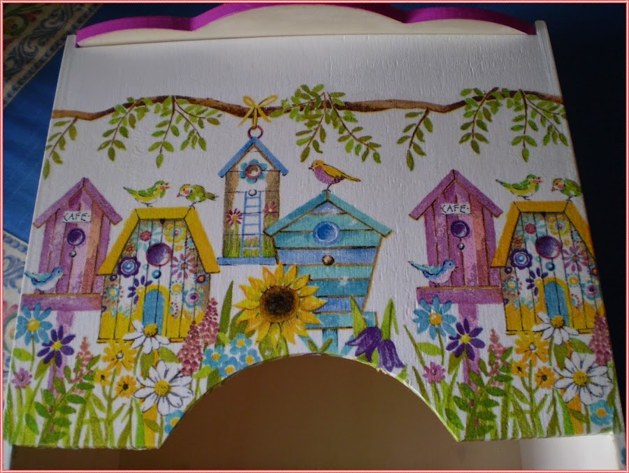 La parte de abajo son flores sueltas de la misma servilleta que fui cortando y pegando y la parte de arriba también son trozos que fui uniendo, poniendo ramas e incluso algún pajarito.