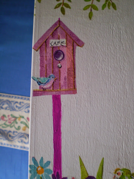 En esta casita, rosa, para que no quedase tan "sola",le pinte el pie y así no parecía que estuviese volando..