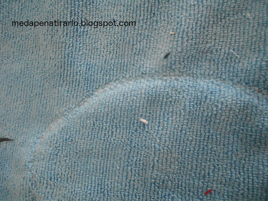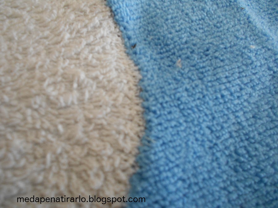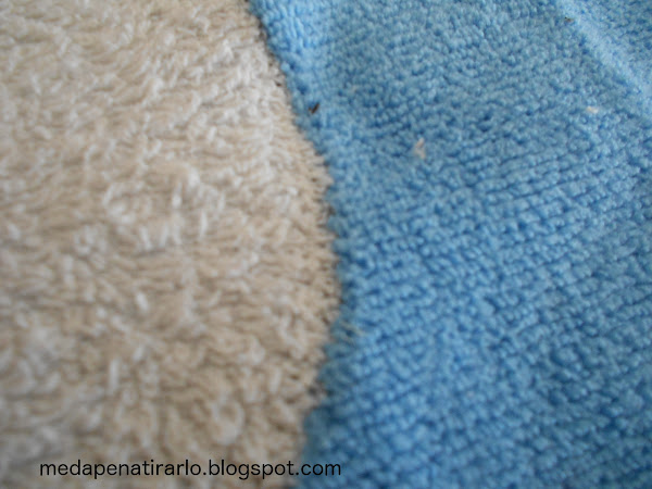 Visión de la parte trasera de la costura: casi ni se aprecia el tipo de la costura realizado ni el color del hilo (blanco) porque con los pelillos de la microfibra queda todo muy disimulado.