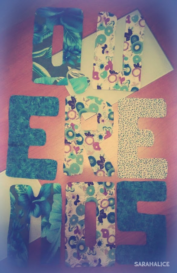 3º Después de elegir el tamaño y forma de las letras, utilizamos las de papel para recortar con esa misma forma nuestras letras de tela.