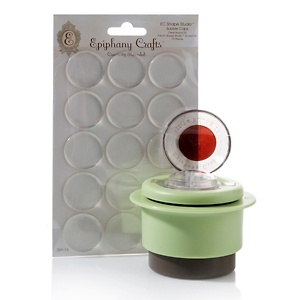 Para hacer los imanes de dibujos usé una herramienta de scrap que compré hace tiempo, es de Epiphany crafts y sirve para hacer adornos para scrap. Esto también podéis hacerlo comprando los cabuchones que se utilizan para hacer bisutería.