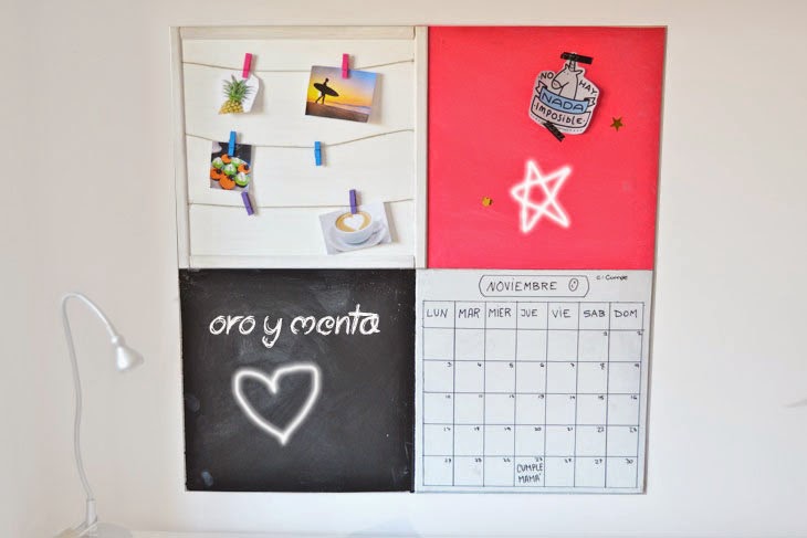 Es un panel súper practico para encima del escritorio ya que tiene cuatro cuadrantes para cuatro usos diferentes: