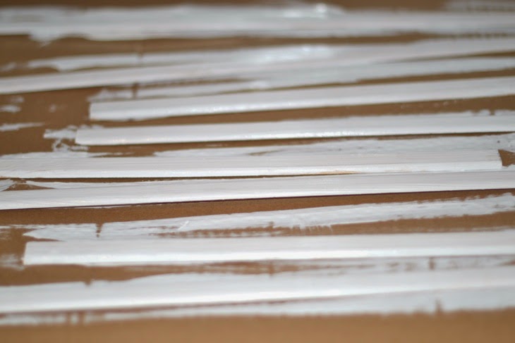 - pegaremos de lado a lado 3 cuerdas con silicona y lo rodeamos con los listones a la medida del cuadrado que habremos pintado previamente, a modo de marco.