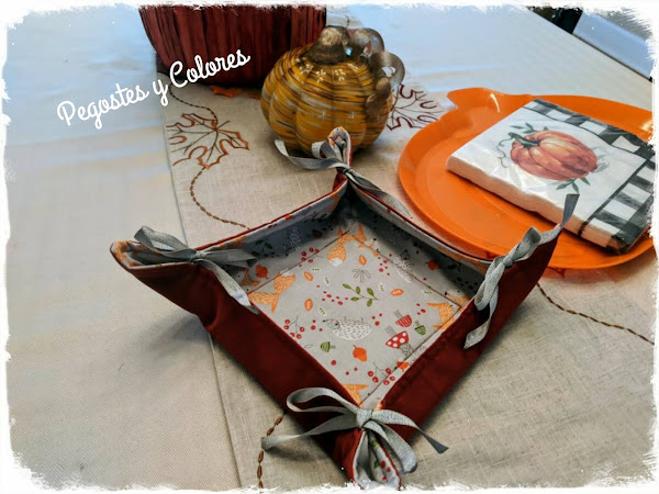 Esta es una entrada rápida, solo para mostrarles mi segundo trabajo de Dia de Gracias, que estrenaremos este jueves con el favor de Dios. Se trata de otra panera de tela, igual a la que hice para Halloween, pero con esta tela otoñal, que se me hizo de lo mas linda y tierna.Las instrucciones ya las di en la entrada Panera de Tela de Halloween, ahi pueden ver el enlace al canal de Youtube de Oh Mother of Mine!, siguiendo paso a paso es que ya aprendí a hacerlas. Me gusta mucho este tipo de paneras porque son reversibles, las puedes usar de cualquier lado y se vera muy linda.