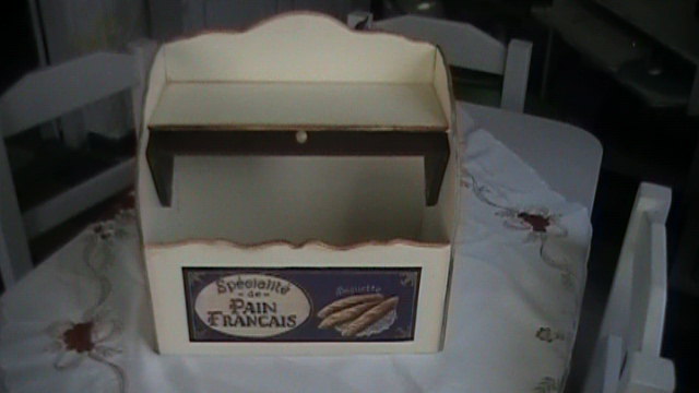 Este es uno de mis ultimos trabjos, recien salida del horno, he realizado esta panera, con la tapa corrediza, va, la panera es obra de mi esposo y la decoracion la he realizado yo. espero les guste..........