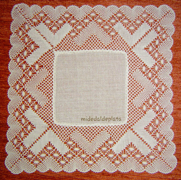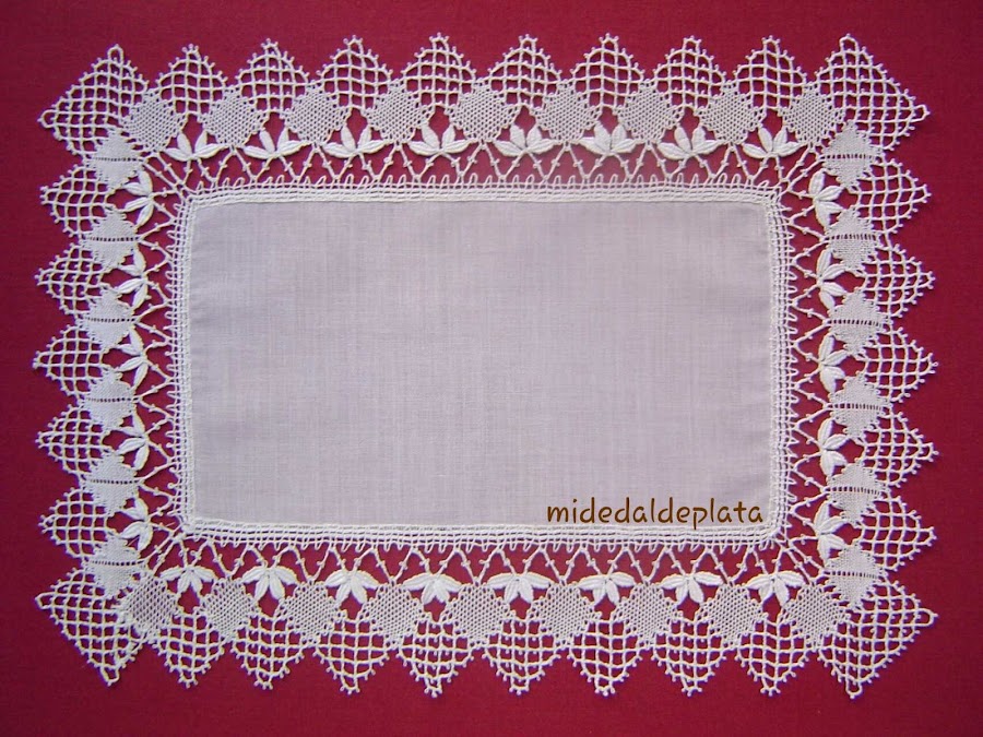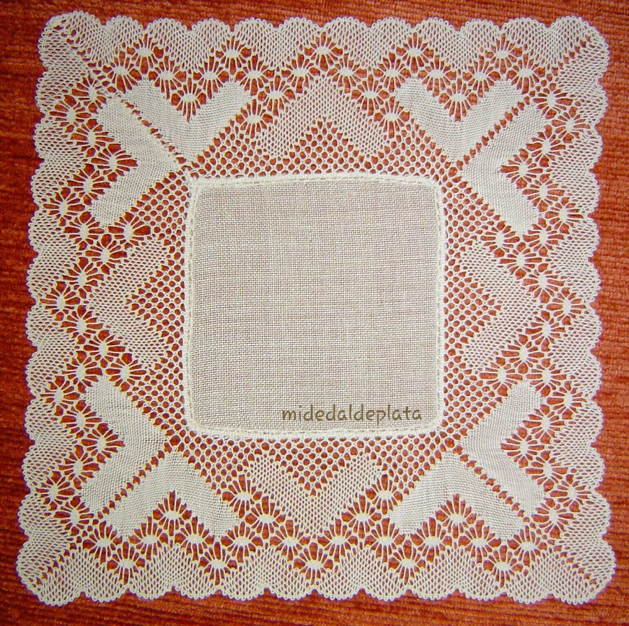 Para hacer pañitos cuadrados lo mejor es utilizar una torta de bolillos redonda, y hacerla girar para confeccionar cada cuarterón del pañito.