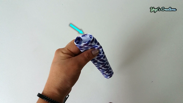 A uno de los extremos le hacemos un pequeño doblez hacia adentro, metemos la elástica y la aseguramos con unas puntaditas.