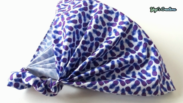 Este tipo de pañoleta te cubre toda la cabeza como puedes ver en la foto de abajo, aunque también la puedes usar recogida como un cintillo o diadema o hacerla más angosta según tu gusto.