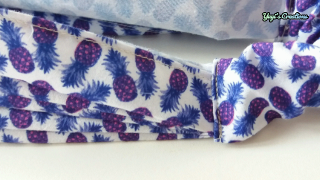 Y vamos a hacer exactamente lo mismo con el otro lado: Sacamos la elástica y la colocamos en el borde de la tela a la que previamente le debemos hacer un pequeño dobladillo hacia adentro.