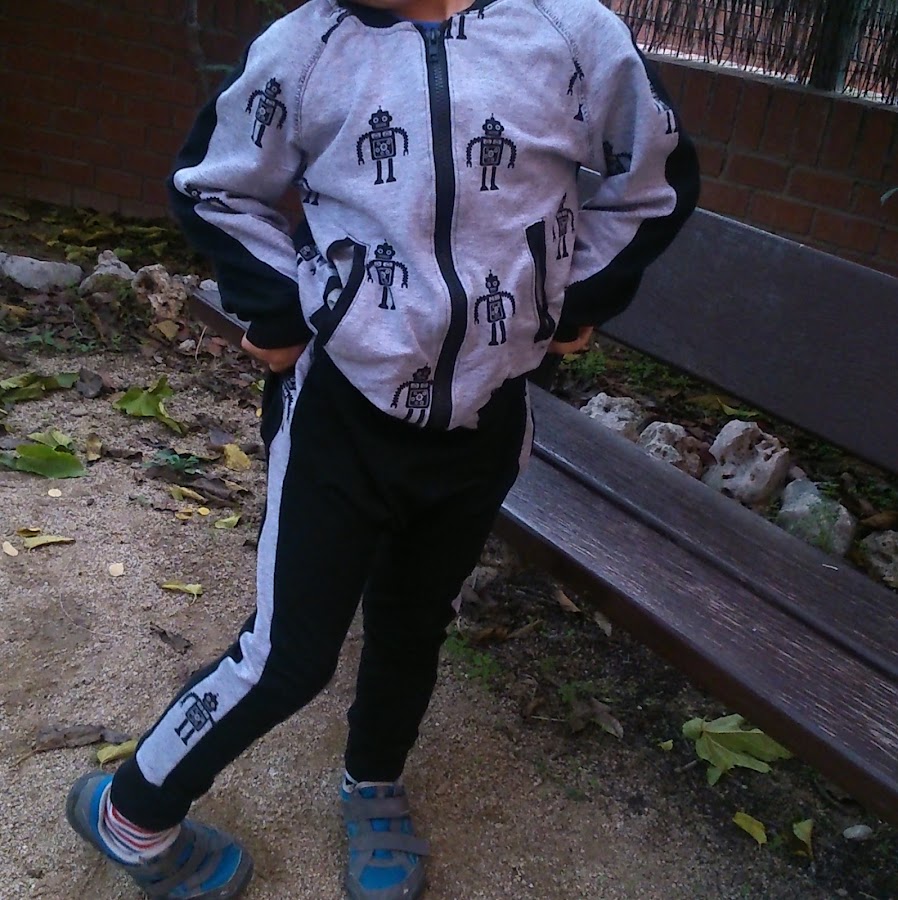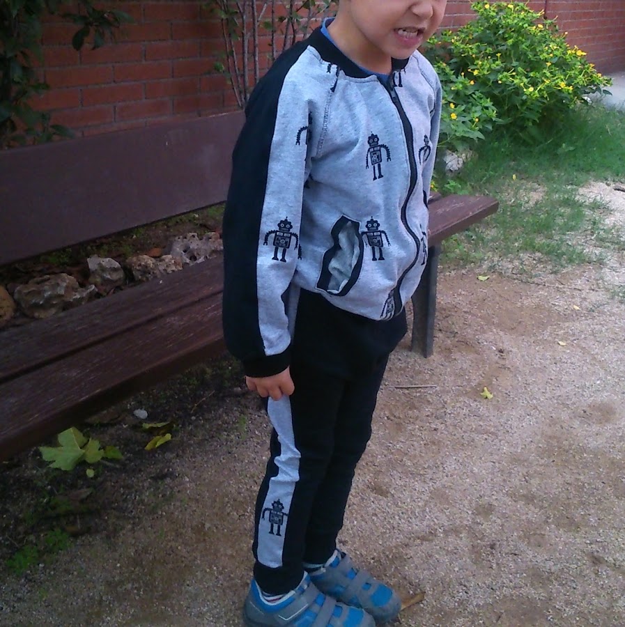 Los originales no llevaban el lateral de otro color, pero como había cosido la cool boomber de robots, pensé hacerle el conjunto completo. Me gusta como ha quedado! ´