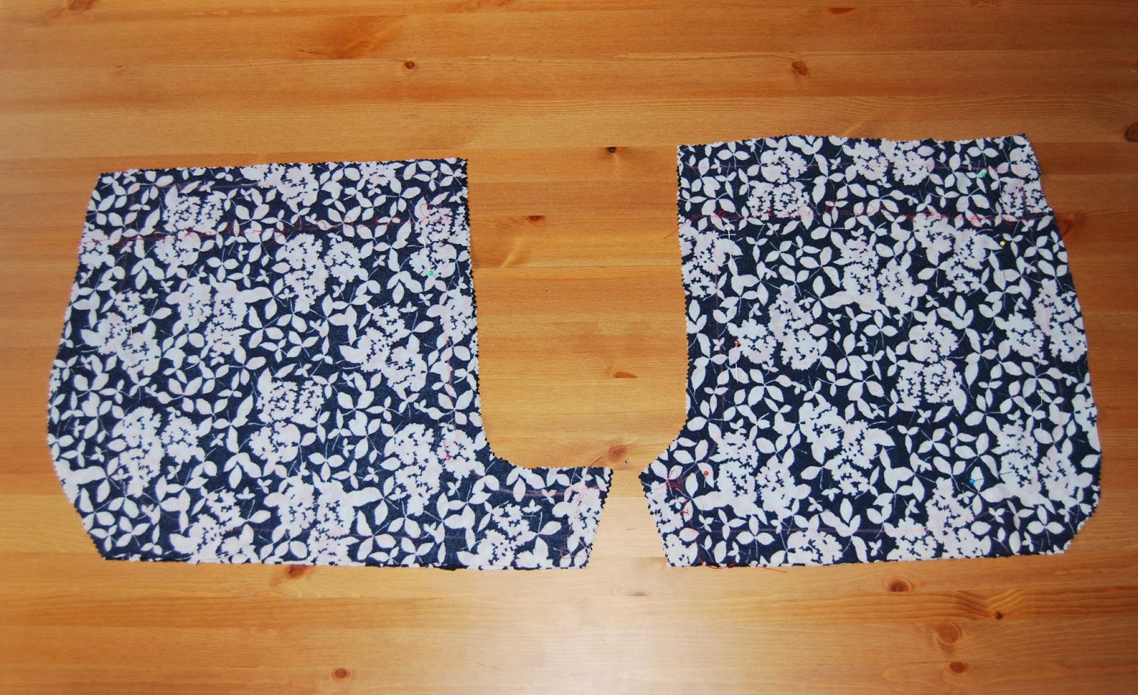 Sin separar ninguna de las piezas, empezamos cosiendo para unir las dos partes del delantero y de la parte posterior.