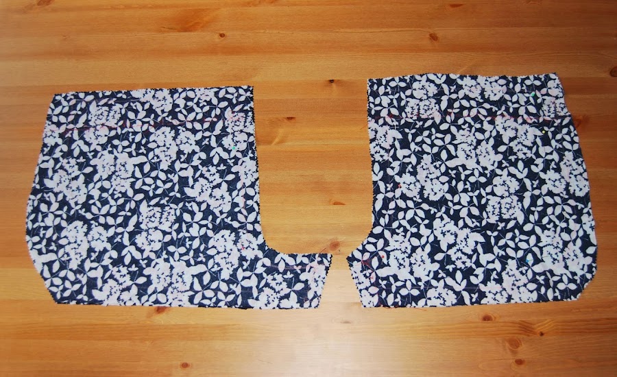 Ahora unimos la parte delantera con la posterior y cosemos tanto las costuras laterales como las de la entrepierna por donde va marcado.