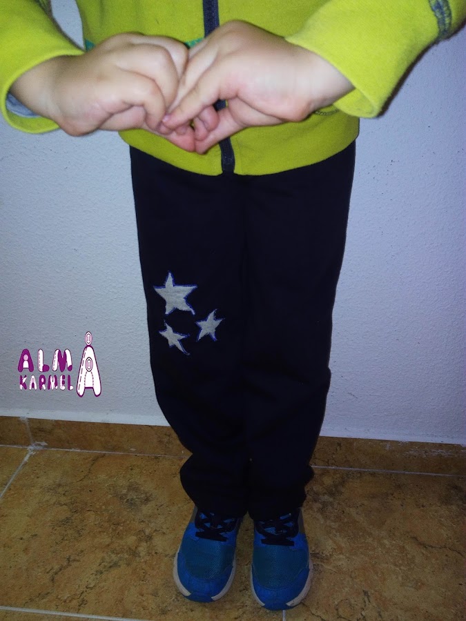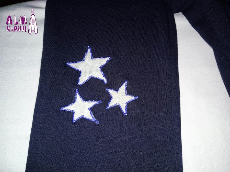 Y mami se lo hizo con estrellitas, en esta ocasión le he puesto tres de diferentes tamaños, usando unos retales de sudadera en gris.