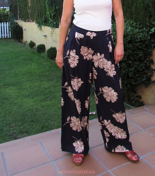 Estando de vacaciones me acerqué al Ribes y Casals de Palma para ver que telas tenían y me llevé un par que me gustaron, con una de ellas me he cosido estos pantalones palazzo, es una viscosa con mucha caida.
