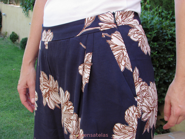 Me ha parecido un patrón simple, unas pinzas, unos pliegues y bolsillos, nada más, y diría que sabiendo colocar una cremallera invisible el resto no tiene complicación aunque no tengamos un nivel avanzado. La cremallera como ves está colocada en la costura izquierda: