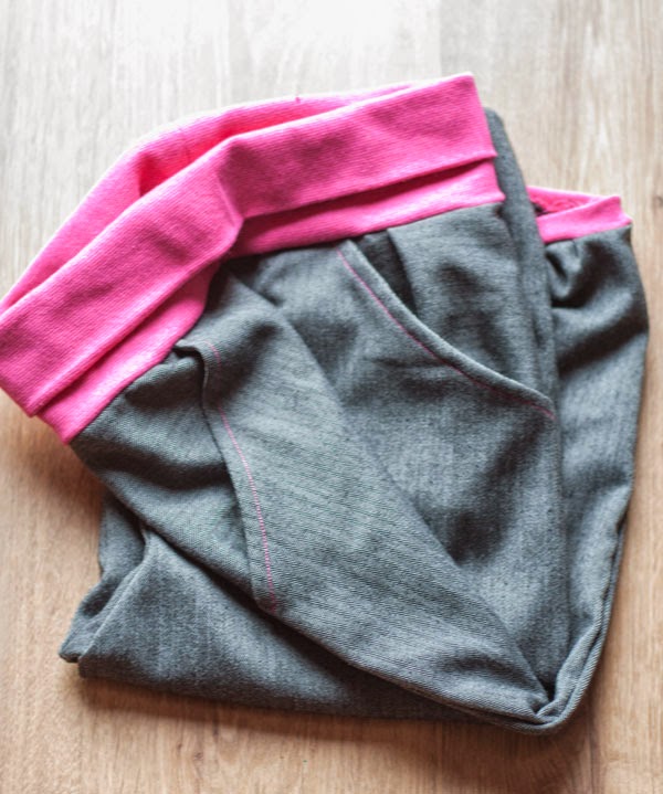 El patrón es de este libro que compré en Creativa en noviembre. Os vais a reír de mí, pero las instrucciones, en francés, idioma que yo no hablo, me parecieron más fáciles y claras que las del vestido de Burda del otro día. A lo mejor es simplemente que el patrón en sí es más fácil, pero no tuve absolutamente ningún problema para montar el pantalón y hacerle algunos cambios como la cintura y los bajos con tela de puños.