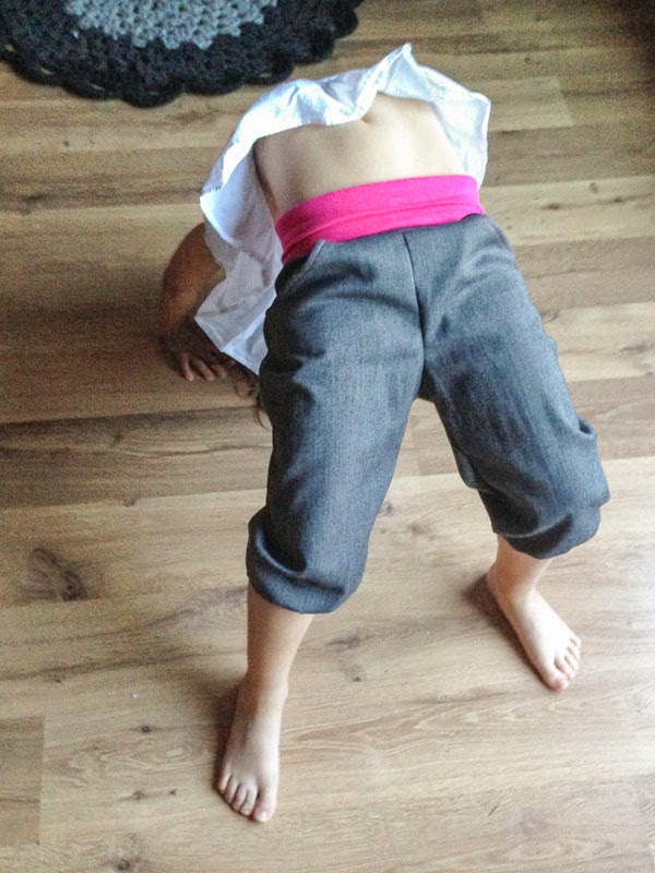 Para hacerle estos pantalones a la pompona (con un punto skater, como me dijo mi amiga Ainara) usé unos pantalones viejos míos a los que se le había roto la cremallera. Las cremalleras me dan un poco de pánico, así que preferí desmontar el pantalón a cambiar la cremallera, y así salió esto.