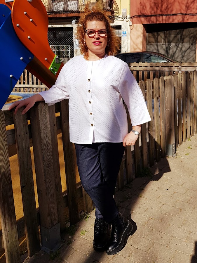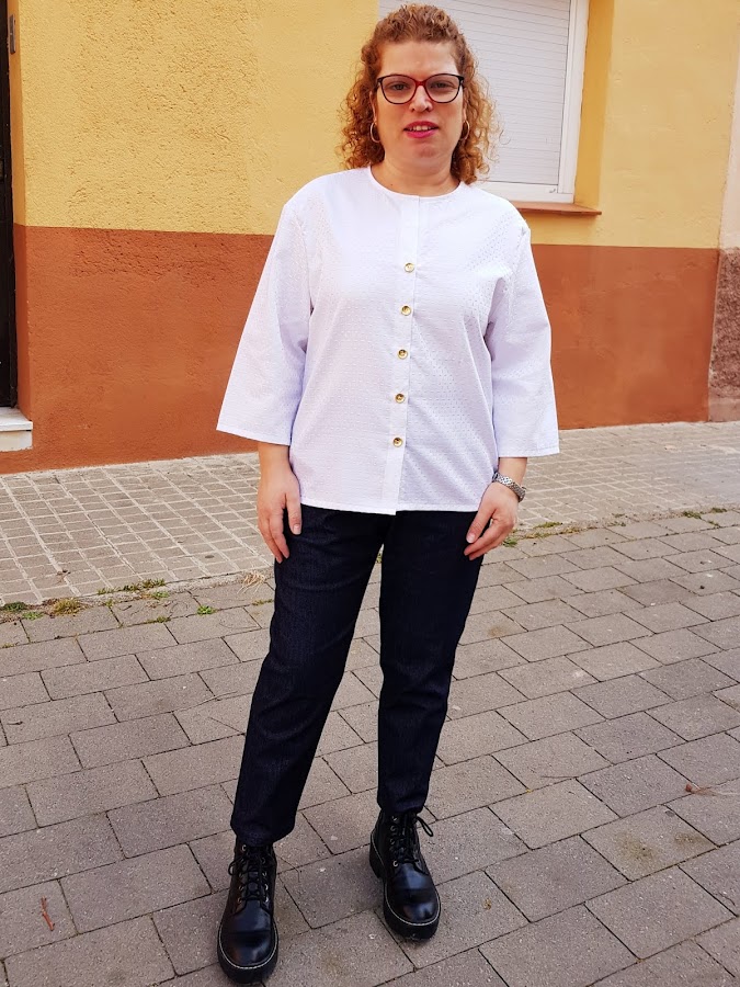 Desde que cosí los pantalones tejanos de campana el año pasado no había vuelto a coser nada con tejido denim y me apetecía coser unos pantalones tejanos pero con mi toque así que compre tejido tejano y he cosido estos pantalones .