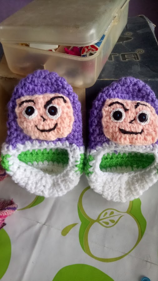 Les comparto estas preciosas pantuflas para niño con la figura de buzz lightyear de la película de toy story.