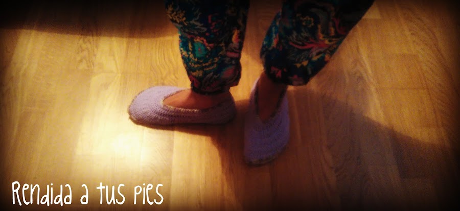 Hola a todos, en esta ocasión les quiero mostrar mis nuevas pantuflas tejidas al crochet. Son muy frescas y cómodas ideales para otoño o primavera ya que su suela la hice con restos de un pantalón de jean. Las hice para estar en casa, y no ensuciar con los zapatos cuando venimos del exterior. No use ningún patrón, solo fui tejiendo y destejiendo hasta que quedaron como me gustan. Espero que les guste mi nueva creación. Saludos y a tejer! Rendida a tus pies ♥