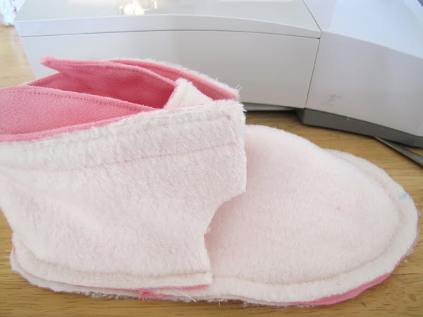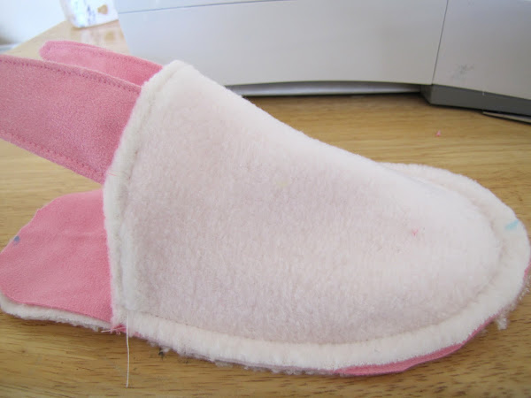 Por favor, tenga en cuenta: Usé un grosor ninguna píldora polar para alinear mis zapatillas y utilicé una imitación gamuza gruesa para mi tela principal. Si está utilizando los materiales más finos se debe cortar sus piezas del patrón ligeramente más pequeñas.. Especialmente las piezas del pie, se cortan más estrecha para dar cabida a sus opciones de la tela. Tuve que hacer un par de zapatillas de prueba antes de que éstos para que sean una buena opción para mis telas y mis kiddos y estas son mis últimas piezas basado en mis opciones de tela.