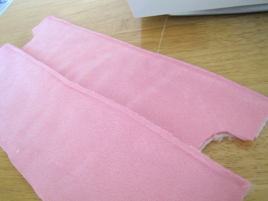 Empieza por tomar las piezas de talón. Con su principal pieza de tela y forro de piezas derecho con derecho coser a lo largo del borde largo mediante un subsidio de costura de 1/4 de pulgada.