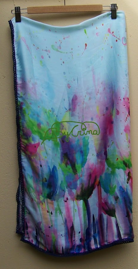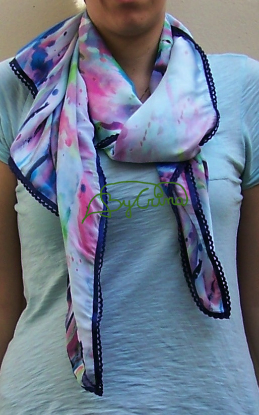 Hace unos días fui a comprar unas telas y me topé con una que me encantó!! Era un retal suelto, así que no daba para mucho, pero pensé que lo podía transformar en un pañuelo veraniego, ya que el veranito está tardando un poco en llegar y por las noches apetece taparse un poco el cuello.