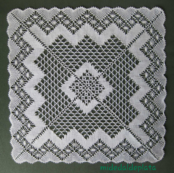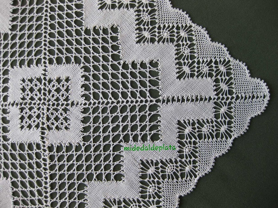 En el centro, grupos de cuatro motivos del punto de la virgen evitan la ayuda de tela para cerrar el encaje.