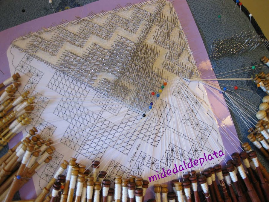 Fueron necesarios unos ochenta palillos de bolillos para elaborar el patrón elegido.