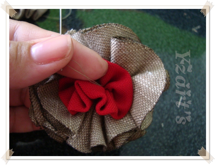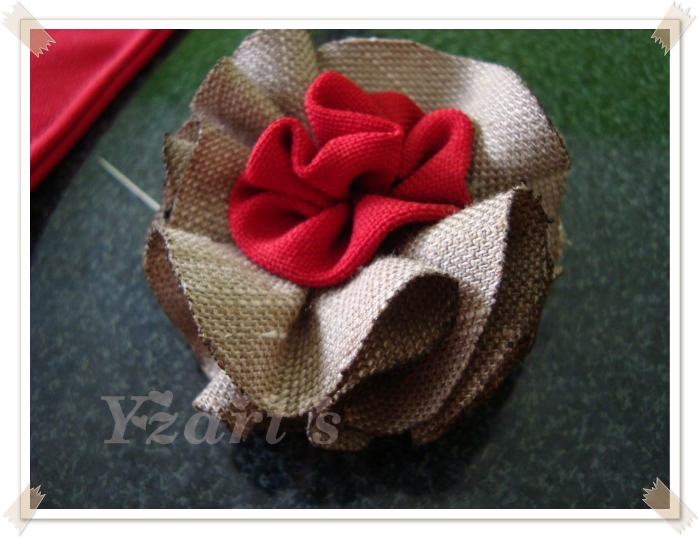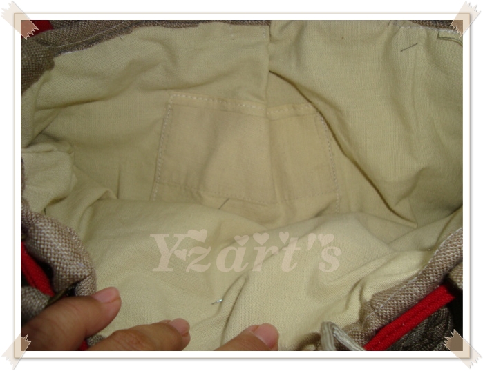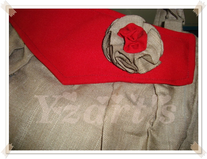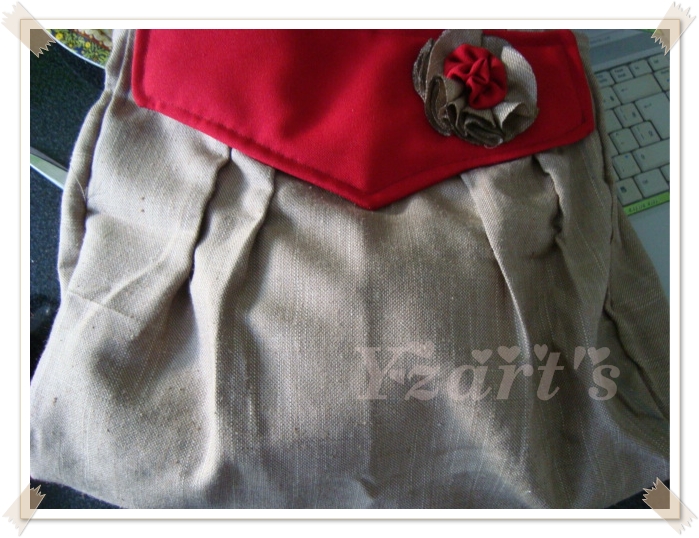 Terminei minha bolsa marrom com detalhes vermelhos.