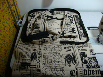 com os 4 cantos feitos, coloque vies em volta do bolso.