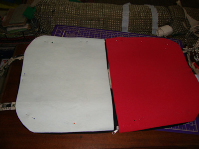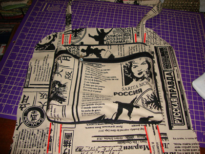 prenda as alças em volta de toda a bolsa. marquei em vermelho para melhor visualização. o encontro das tiras vc deixa no lugar onde vai pregar o bolso.