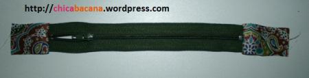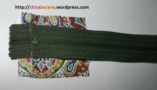 Vire para o outro lado e costure na máquina bem próximo ao final do zíper. Faça o mesmo do outro lado. O resultado será esse: