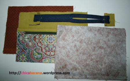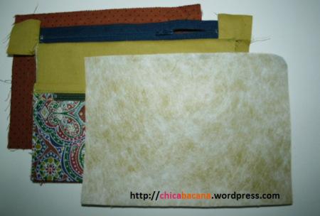 Depois de cortar as peças, entretele todas, exceto os quadradinhos das extremidades dos zíperes.