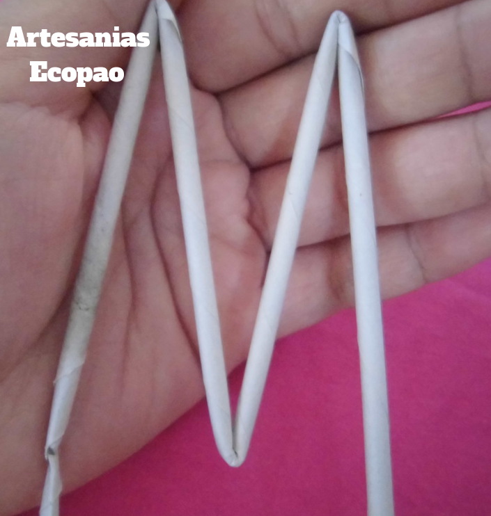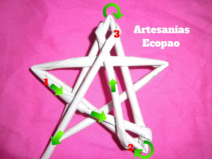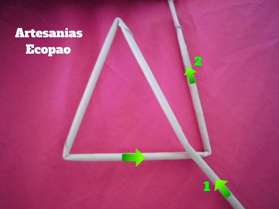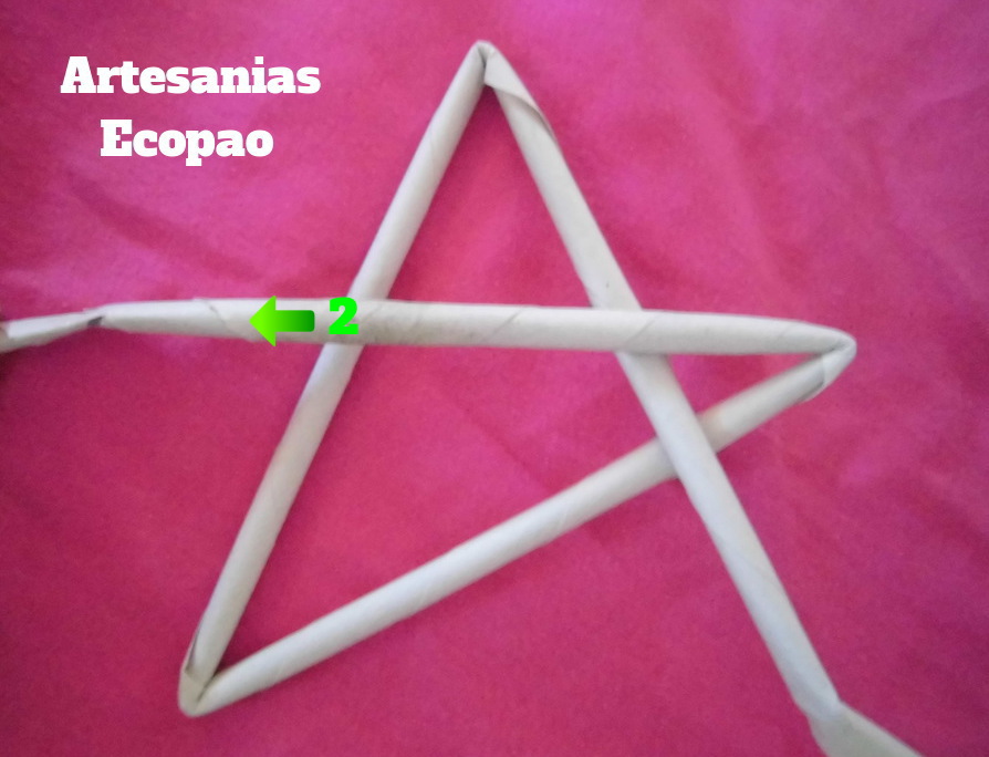 Para hacer la estructura de la estrella; lo primero es formar un triángulo y con el rollito marcado como 2, hacemos el siguiente paso.