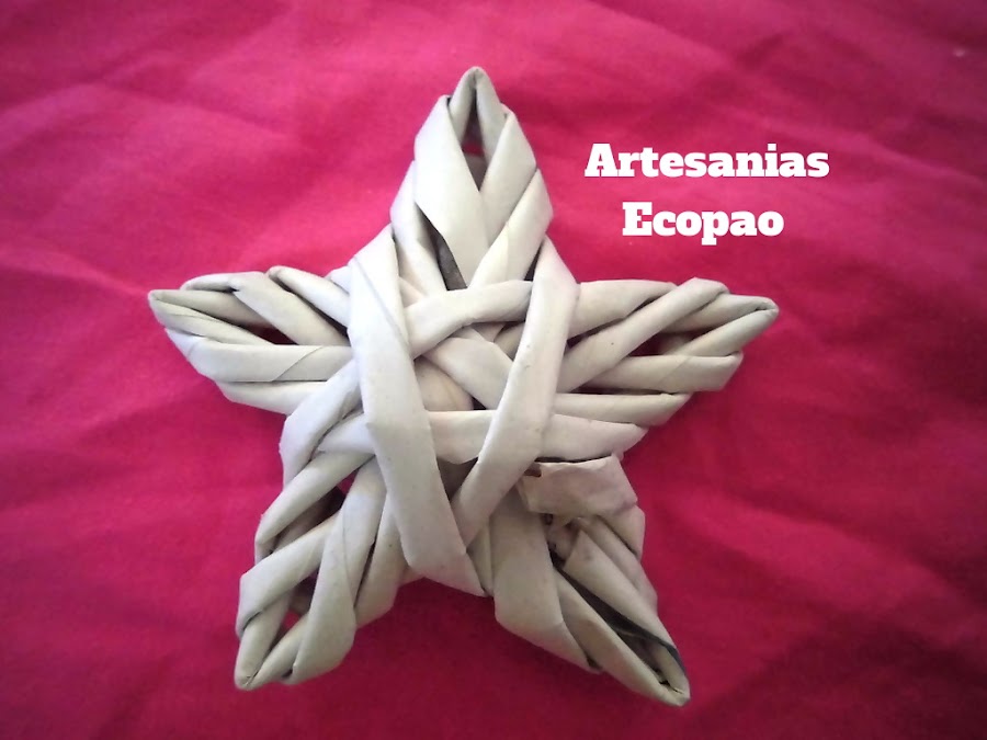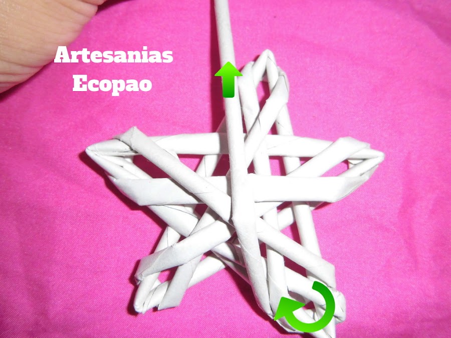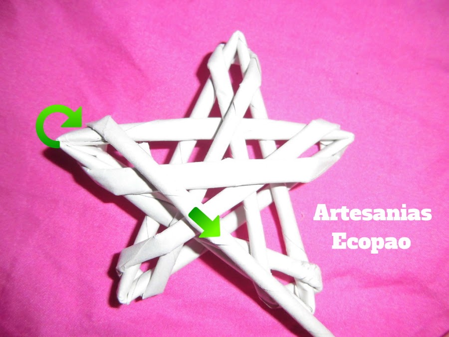 Para cerrar el tejido...voltea la estrella, recorta el rollito y aplica pegamento.