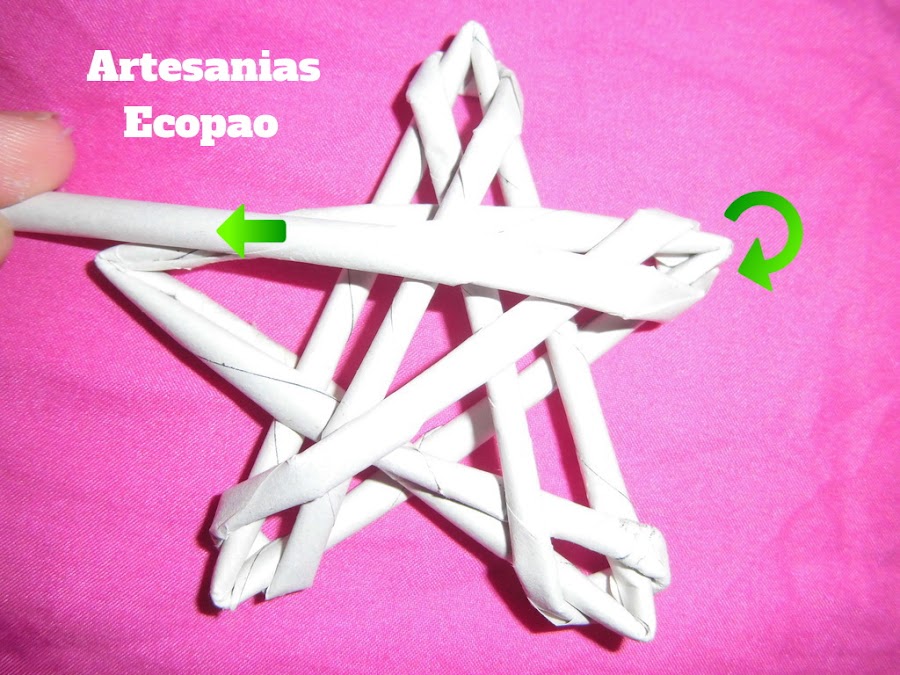 Dale forma con tus dedos y pasa el rollito al rededor de una de las puntas de la estrella, de izquierda a derecha.