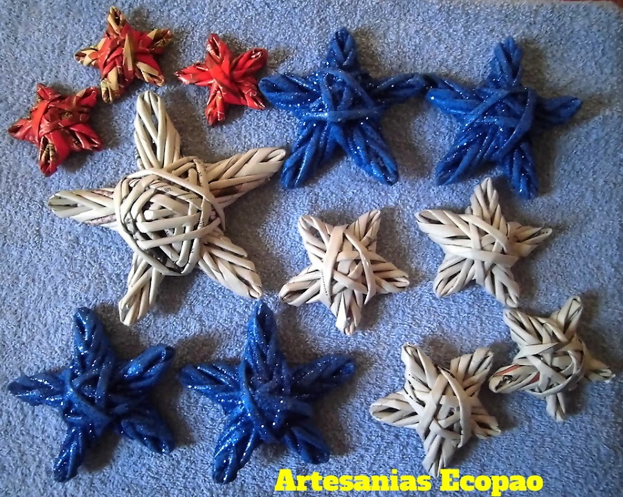Estas son algunas otras muestras. Las estrellas pequeñas, ubicadas en la parte superior izquierda, las hice con papel de regalo. Asi quedaran ya lista con color y algún estampado especifico.