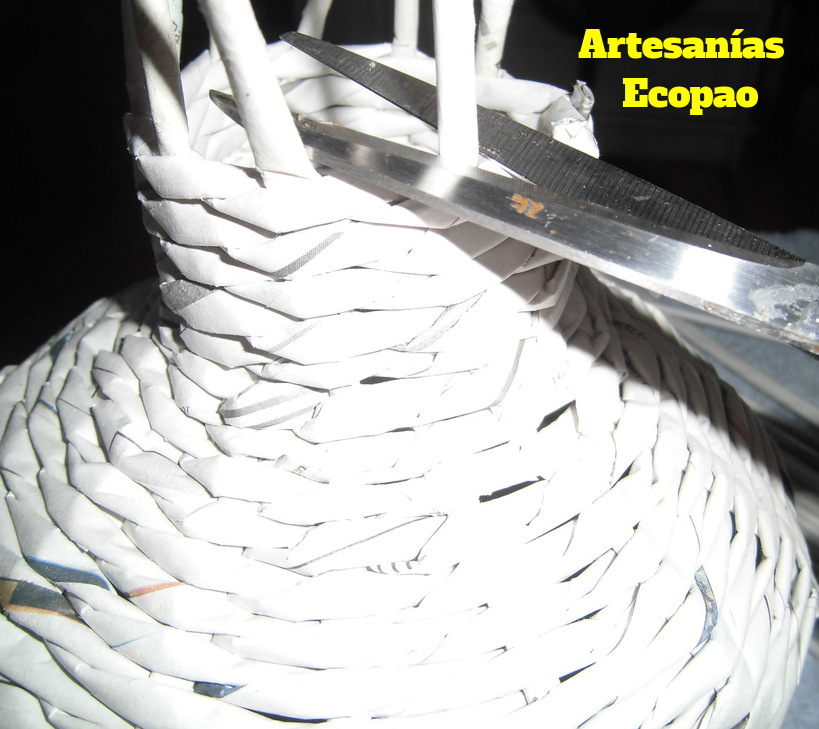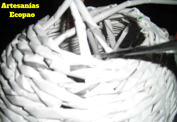 Teje hasta llegar a la altura donde hicimos el corte de la bolita y recorta un poco los pilares, repite el mismo procedimiento con la otra bolita.