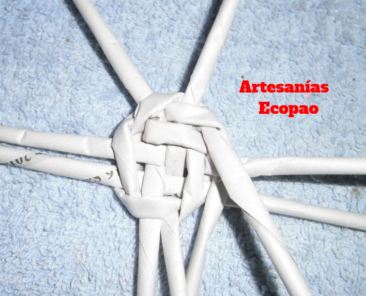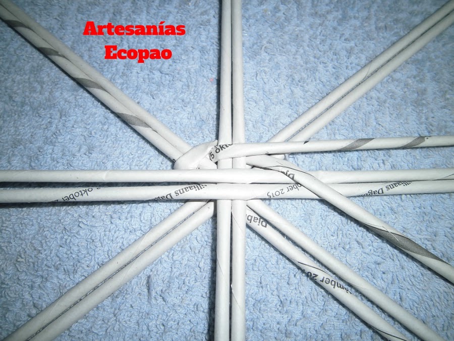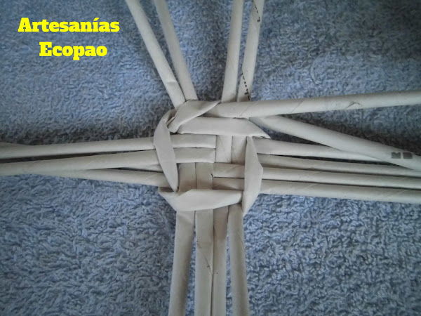 Para el primer paso, usamos 8 rollitos de base, formando 2 cruces y uniendolas entre sí.