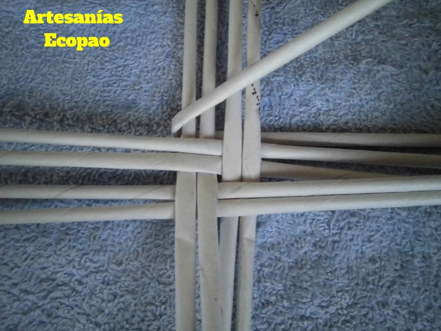 Para los brazos entrecruza 4 rollitos para la base y con otro rollito comienza el tejido.