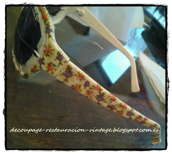 Con paciencia vamos aplicando las florecillas una a una con el medium para decoupage. Este es el resultado final... Un buen cambio!