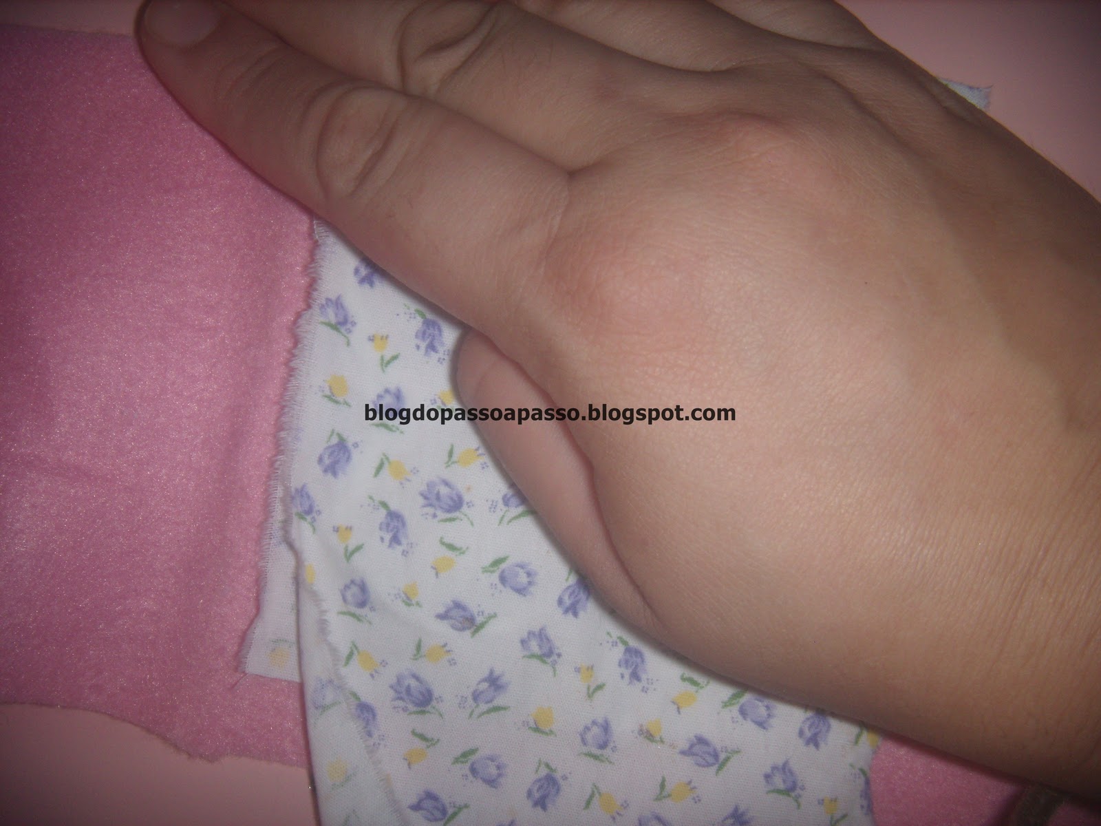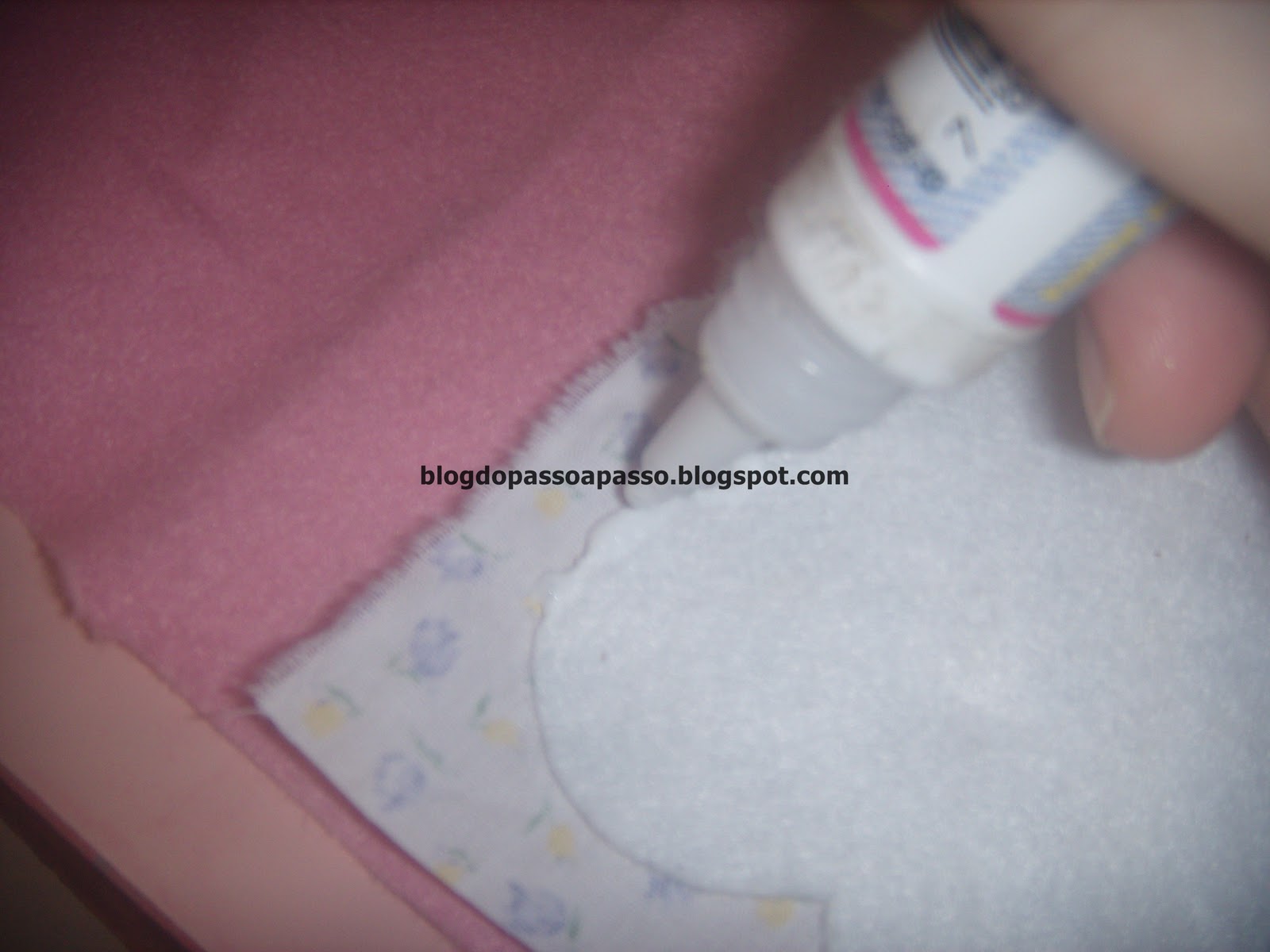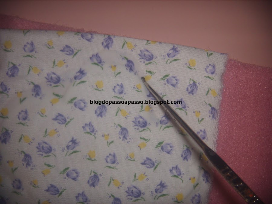 Aperte bem o "sanduiche" pra cola grudar no tecido de cima.