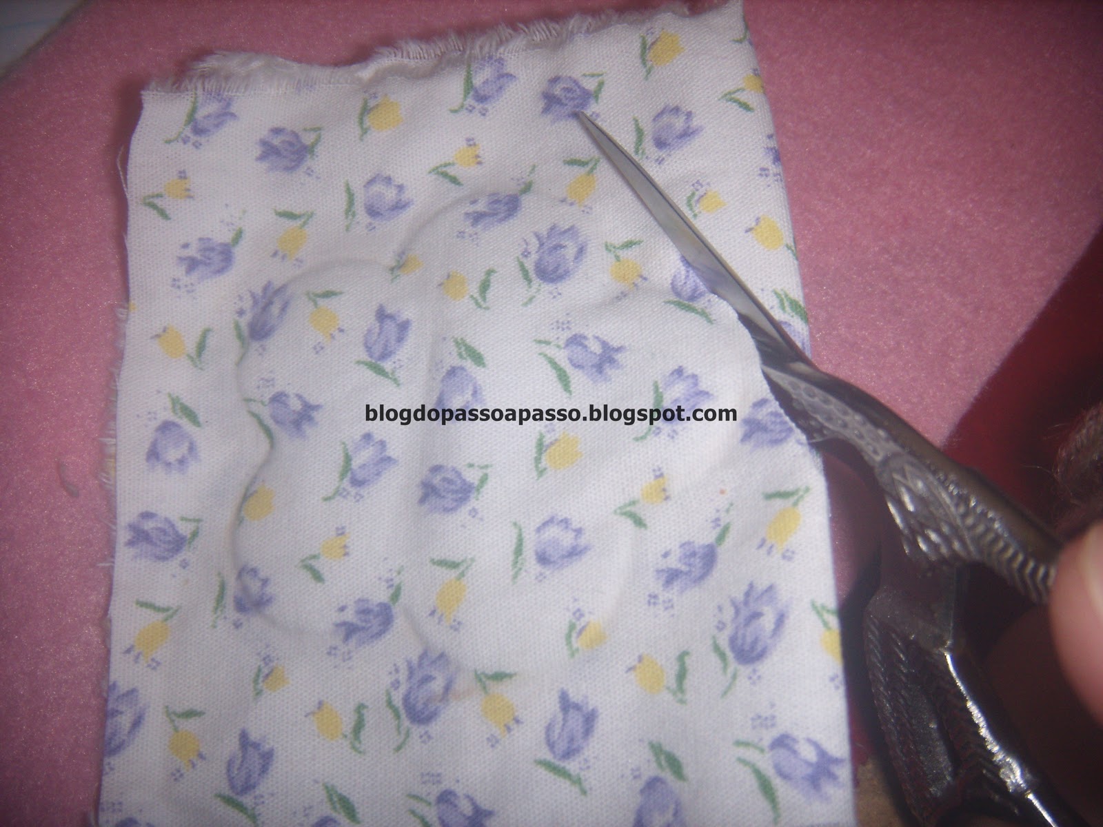 Pongas la flor cortada arriba de la tela que debe estar al revés.